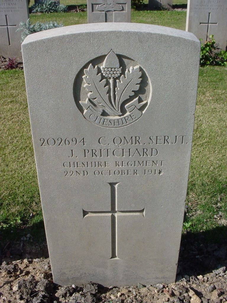 22/10/1918 Company Quartermaster Serjeant John Pritchard 2nd (Garr.) Bn. Alexandria (Hadra) War Memorial Cemetery, Egypt. ‘202694’ (pic from findagrave.com – with thanks)