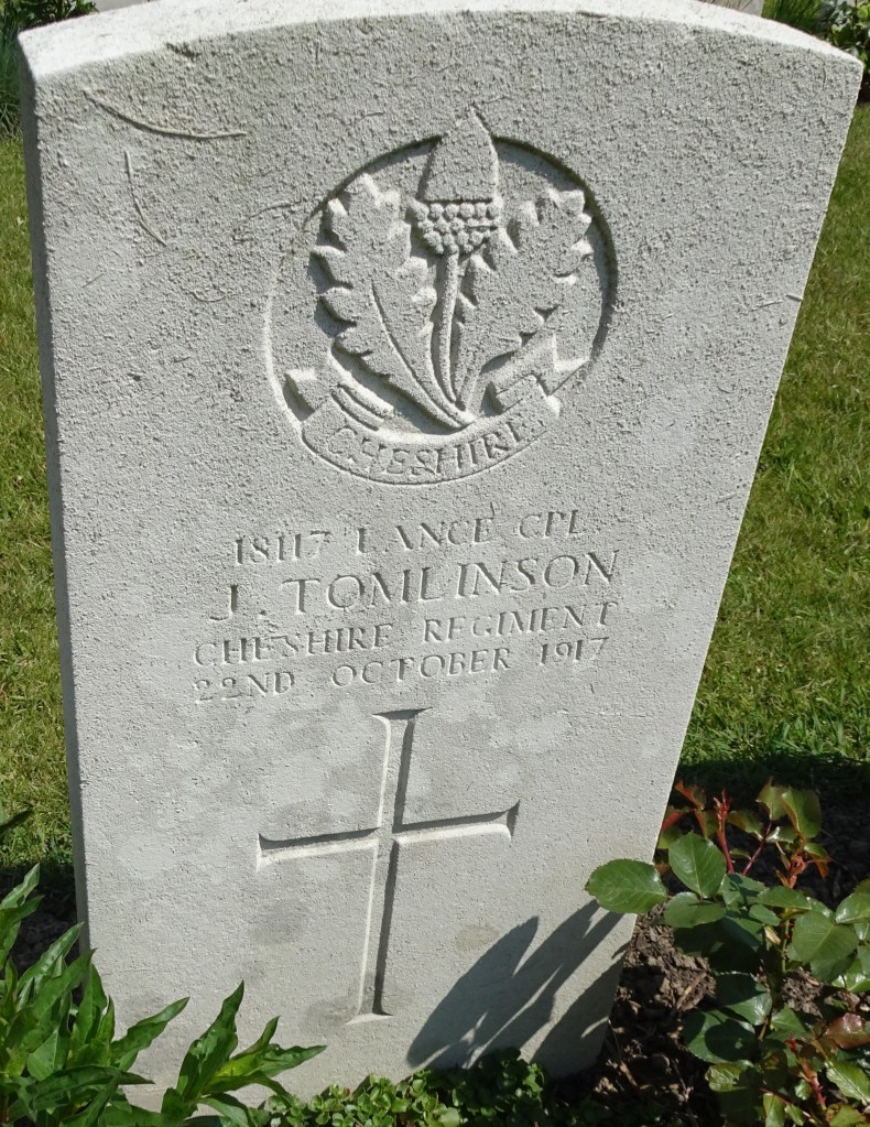 22/10/1917 Lance Corporal James Tomlinson 15th Bn. Bleuet Farm Cemetery, West-Vlaanderen Belgium. ‘18117’
