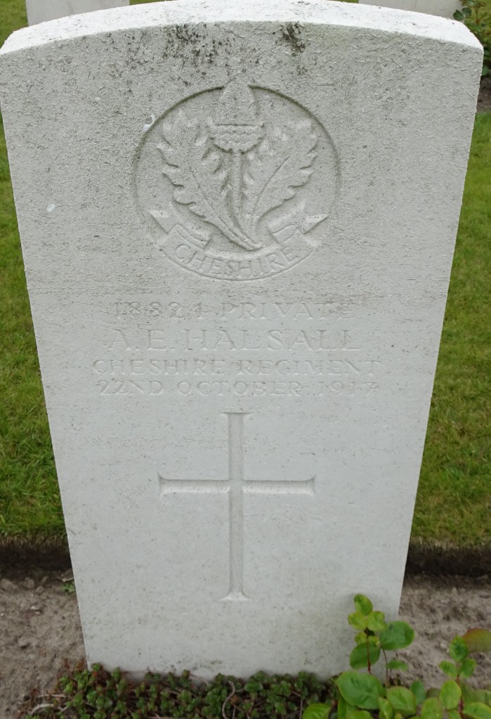22/10/1917 Private Albert Edward Halsall 16th Bn. Poelcapelle British Cemetery, West-Vlaanderen Belgium. ‘18824’