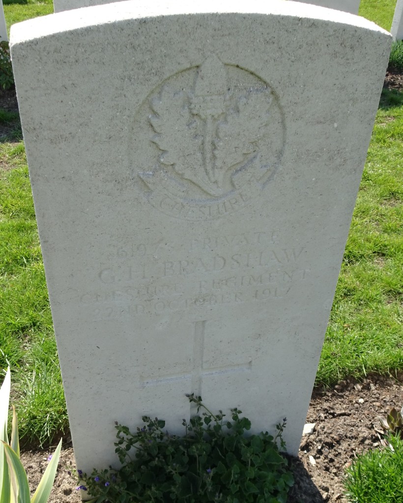 22/10/1917 Private George Henry Bradshaw 16th Bn. Artillery Wood Cemetery, West-Vlaanderen Belgium. ‘61973’