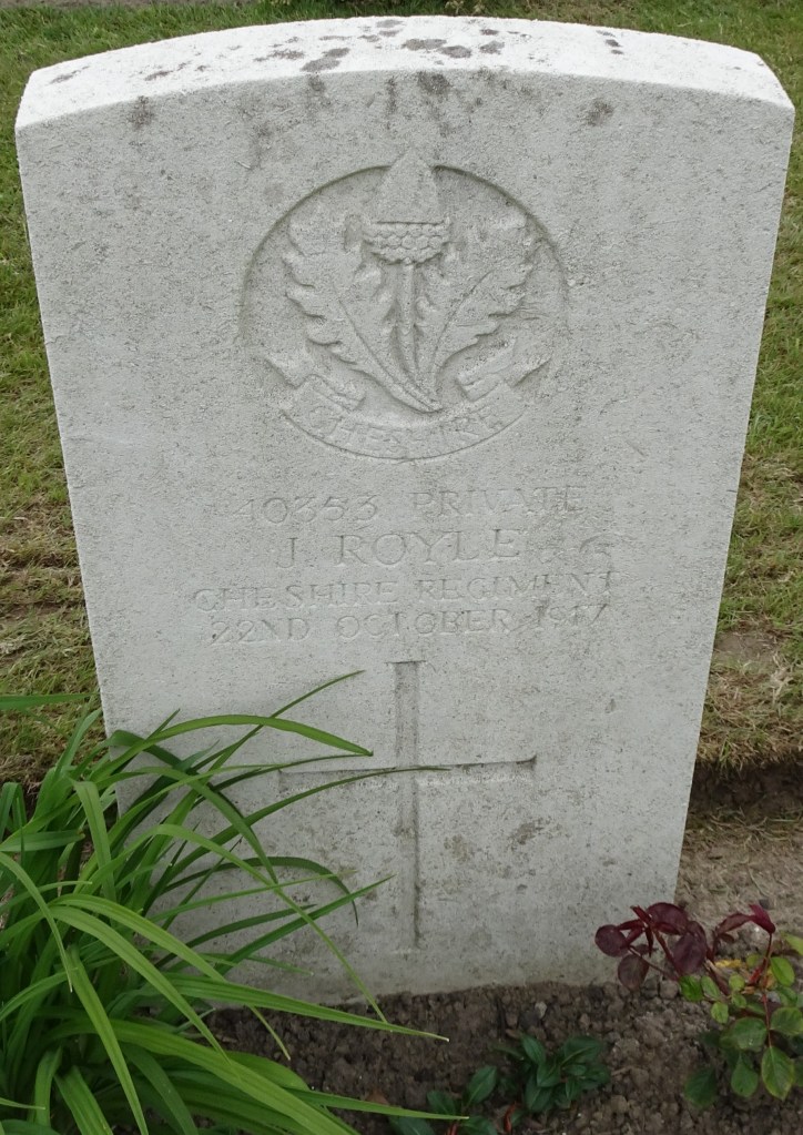 22/10/1917 Private James Royle 16th Bn. Poelcapelle British Cemetery, West-Vlaanderen Belgium. ‘40353’