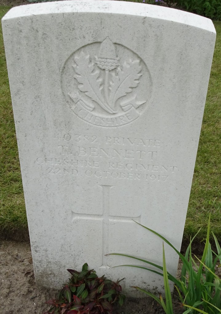22/10/1917 Private Thomas Bennett 16th Bn. Poelcapelle British Cemetery, West-Vlaanderen Belgium. ‘40382’
