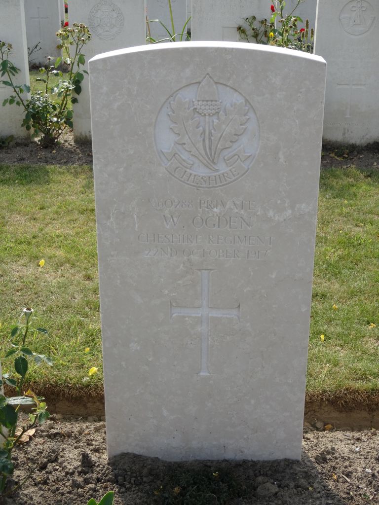 22/10/1917 Private William Ogden 16th Bn. Poelcapelle British Cemetery, West-Vlaanderen Belgium. ‘60288’