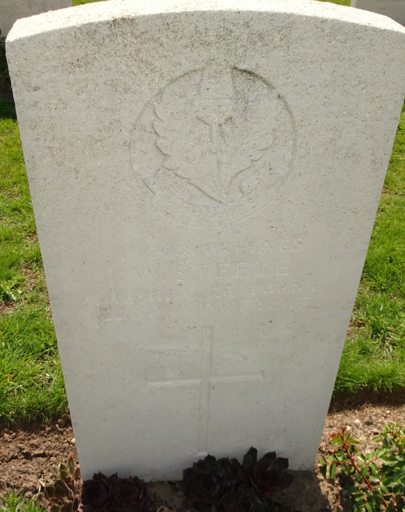 22/10/1917 Private William Steele 16th Bn. Artillery Wood Cemetery, West-Vlaanderen Belgium. ‘19202’