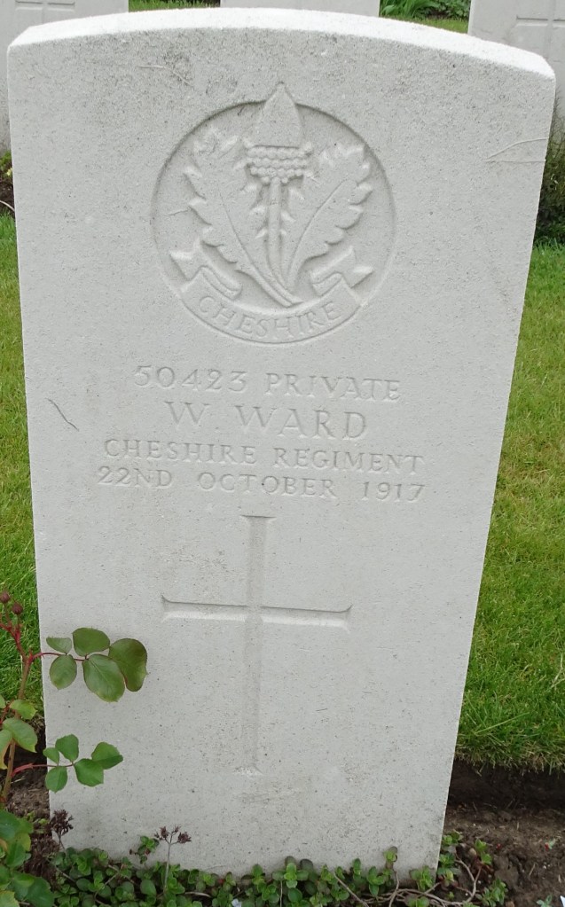 22/10/1917 Private William Ward 16th Bn. Bedford House Cemetery, West-Vlaanderen Belgium. ‘50423’