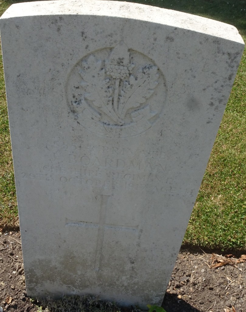 29/10/1917 Private James Boardman (Age 41) 22nd Bn. Dozinghem Military Cemetery, West-Vlaanderen Belgium. ‘55514’ Son of Henry and Hannah Boardman; husband of Emily Boardman, of 1 Second St., Bootle, Liverpool. Born at Bootle.