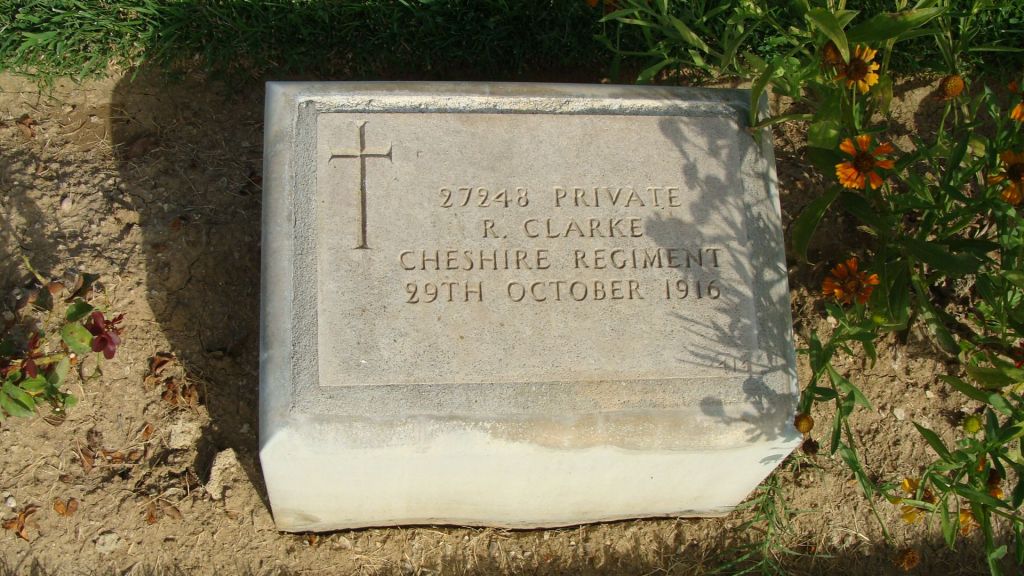 29/10/1916 Private Robert Clarke 9th Bn. Karasouli Military Cemetery, Greece. ‘27248’ (pic from findagrave.com – with thanks)