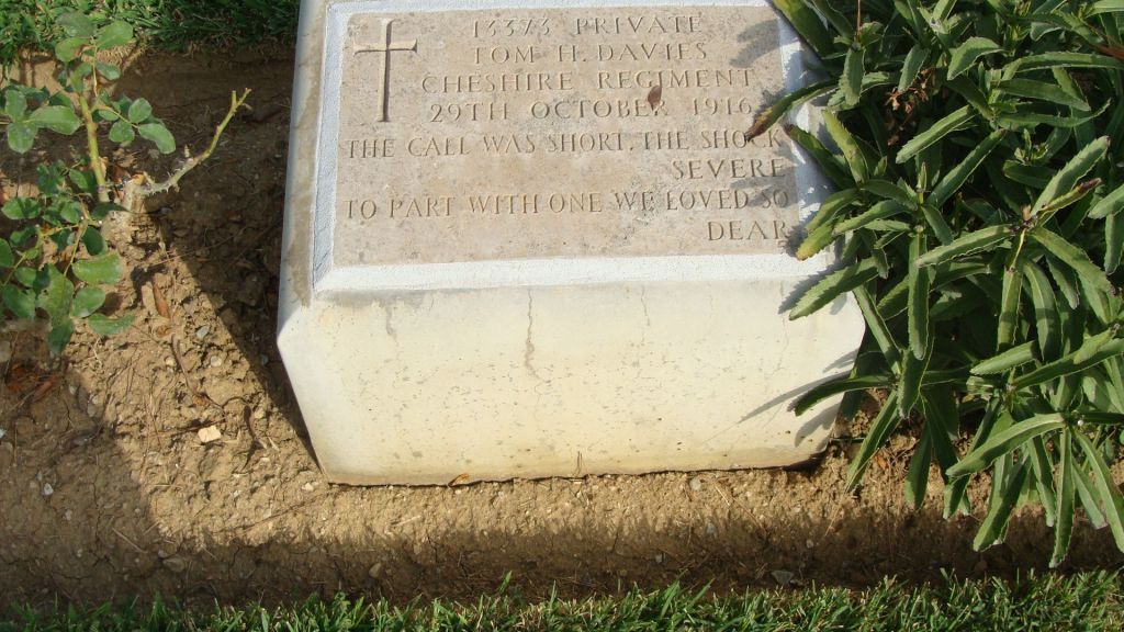 29/10/1916 Private Thomas Henry Davies (Age 27) 12th Bn. Karasouli Military Cemetery, Greece. ‘13373’ Son of Ann Jane Davies, of 13, Brook Square, Brook St., Wrexham. (pic from findagrave.com – with thanks)