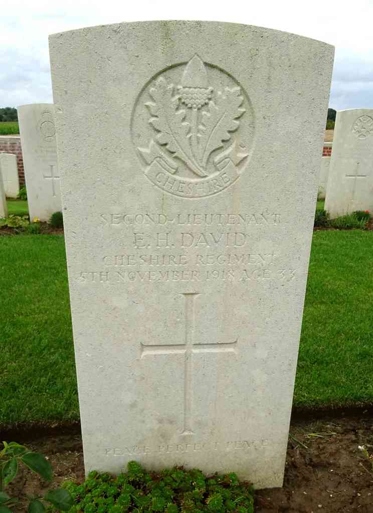 5/11/1918 Second Lieutenant Edward Harold David (Age 33) 1st Bn. Cross Roads Cemetery, Fontaine-Au-Bois, Nord France. Son of Mr. and Mrs. W. P. David, of 76, Glanbrydan Avenue, Brynmill, Swansea. (pic from findagrave.com – with thanks)