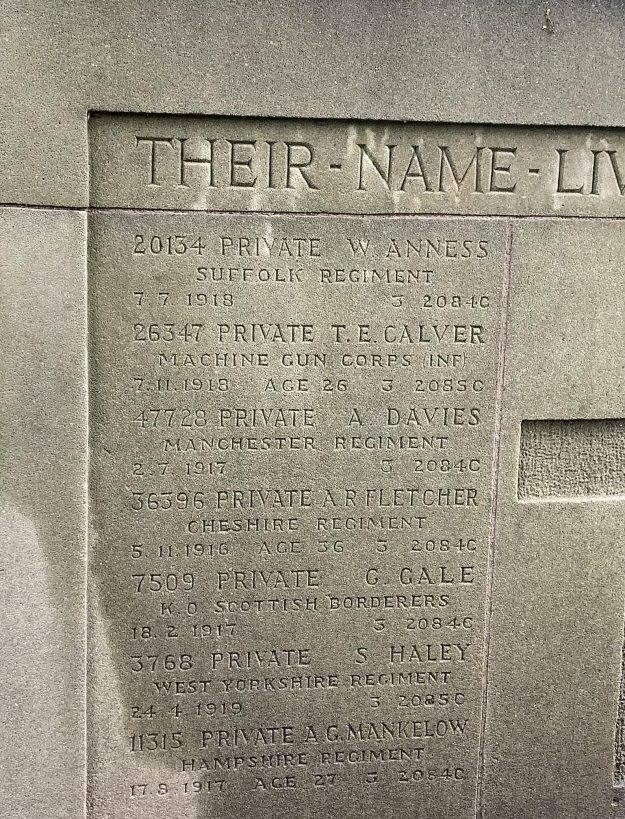 5/11/1918 Lance Corporal Albert Oakes 1st Bn. Wybunbury (St. Chad) Churchyard Extension, Cheshire United Kingdom. ‘7686’ (pic from findagrave.com – with thanks)