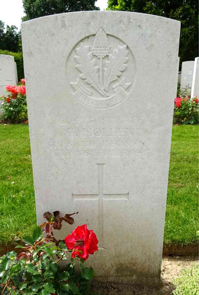 5/11/1918 Private Ernest Holden 9th Bn. Awoingt British Cemetery, Nord France. ‘60478’ Son of Mrs. B. A. Holden, of 5, Barnet Place, Edenfield, Manchester. (pic from findagrave.com – with thanks)