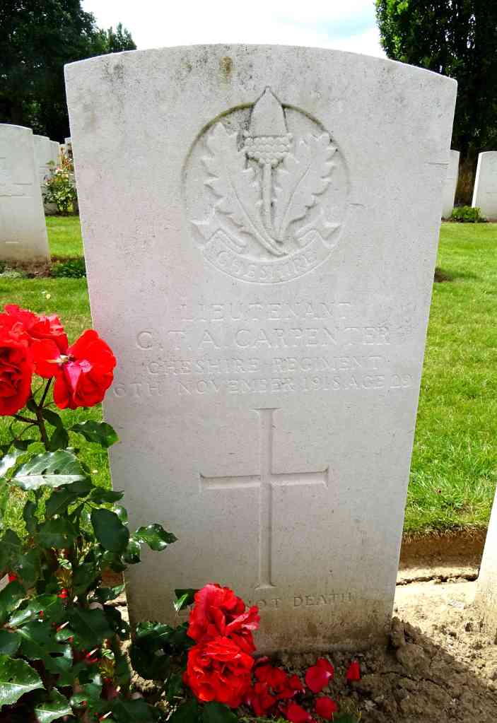 6/11/1918 Lieutenant Cedric Theodore Arundel Carpenter (Age 29) 7th Bn. Awoingt British Cemetery, Nord France. Son of Capt. William Sidney and Marion Carpenter, of 15, Murray Rd., Northwood, Middx. (pic from findagrave.com – with thanks)