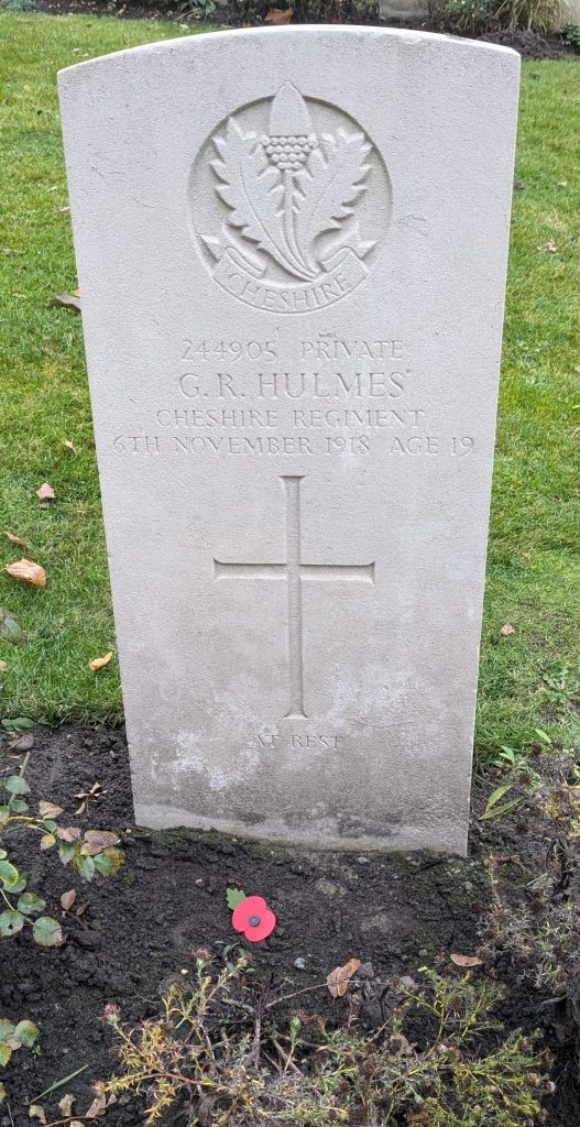 6/11/1918 Private George Robert Hulmes (Age 19) 11th Bn. Poznan Old Garrison Cemetery, Poland. ‘244905’ Son of Eveline Downing (formerly Hulmes), of 7, Commercial St., Werneth, Oldham, and the late George Frederick Hulmes. Born at Gorton, Manchester. (pic from Sid/Gill with thanks)