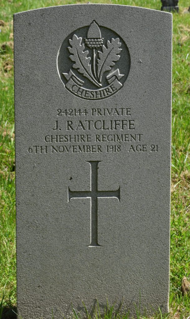 6/11/1918 Private Joseph Ratcliffe (Age 21) 2nd/5th Bn. Barrow-In-Furness (Thorncliffe) Cemetery and Crematorium, Lancashire United Kingdom. ‘242144’ Son of Mr. and Mrs. J. Ratcliffe, of Pleasant Field, Newland, Ulverston, Lancs. Born at Barrow-in-Furness. (pic from findagrave.com – with thanks)