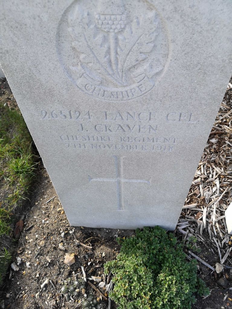 7/11/1918 Lance Corporal John Craven 9th Bn. St. Sever Cemetery Extension, Rouen, Seine-Maritime France. ‘265124’ (pic from findagrave.com – with thanks)