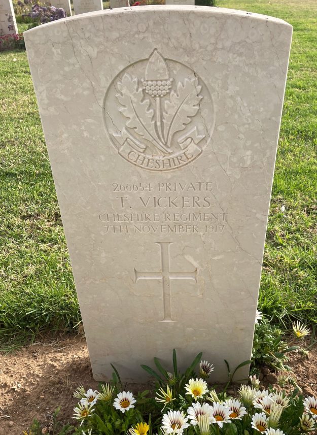 7/11/1917 Private Thomas Vickers 2nd/4th Bn. Beersheba War Cemetery, Israel and Palestine (including Gaza). ‘266654’ (pic from findagrave.com – with thanks)