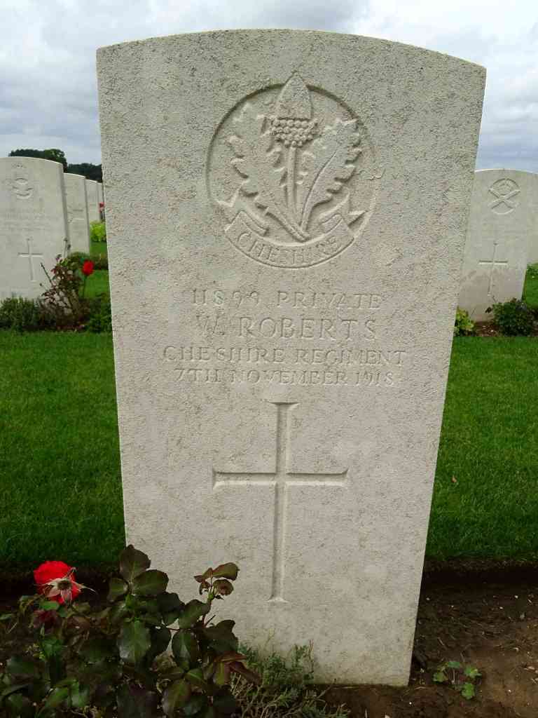 7/11/1918 Private William Roberts 9th Bn. Cross Roads Cemetery, Fontaine-Au-Bois, Nord France. ‘11899’ (pic from findagrave.com – with thanks)