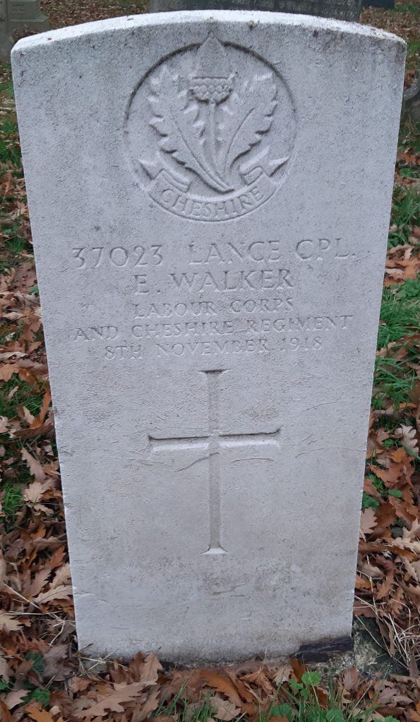 8/11/1918 Lance Corporal Edgar Walker (Age 35) 17th Reserve Bn. Preston (New Hall Lane) Cemetery, Lancashire United Kingdom. ‘46905’ Son of James and Mary Walker; husband of Annie Walker, of 35, Porter St., Preston. Born at Preston. (pic from findagrave.com – with thanks)