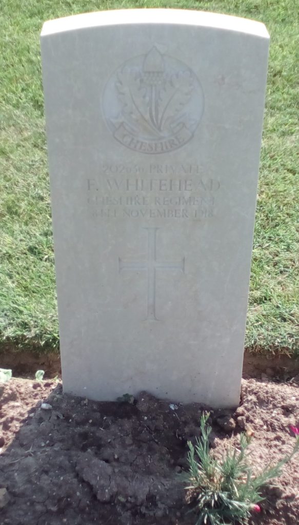 8/11/1918 Private Frank Whitehead 2nd Bn. Mikra British Cemetery, Kalamaria, Greece. ‘202636’ (pic from findagrave.com – with thanks)