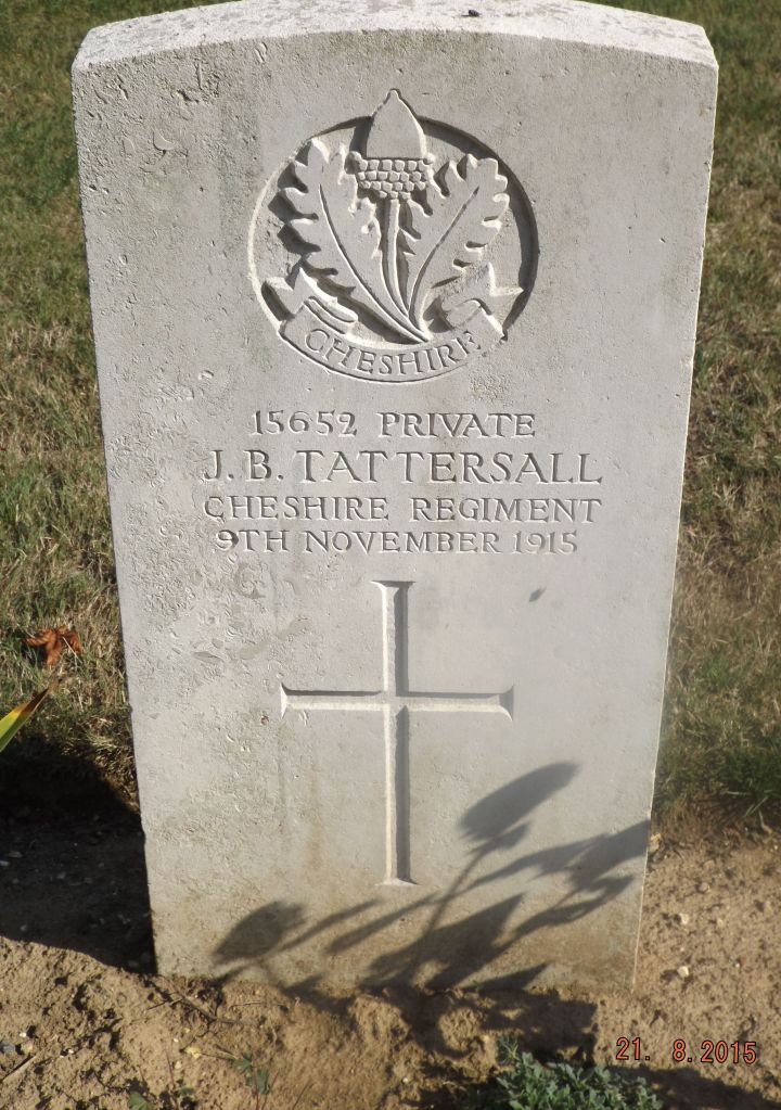 9/11/1915 Private James Bray Tattersall 1st Bn. Citadel New Military Cemetery, Fricourt, Somme France. ‘15652’ (pic from findagrave.com – with thanks)
