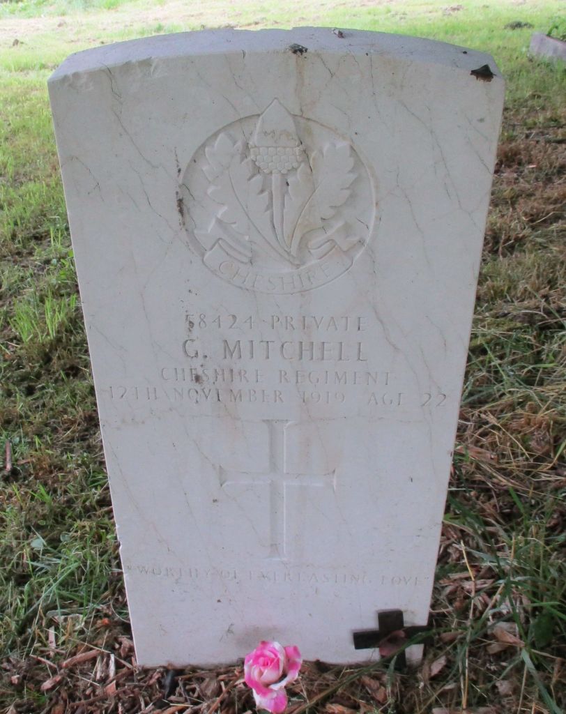 12/11/1919 Private George Mitchell (Age 22) 12th Bn. Blackburn Cemetery, Lancashire United Kingdom. ‘58424’ Son of Rothery and Margaret Mitchell. (pic from findagrave.com – with thanks)