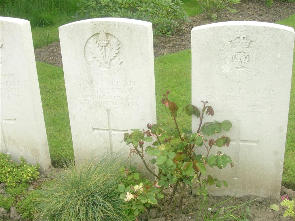 12/11/1918 Private Gilbert Thornton (Age 22) 1st/5th Bn. Etaples Military Cemetery, Pas de Calais France. ‘315247’ Son of Richard Henry and Mary Thornton, of 42, Huxley St., Castle, Northwich, Cheshire. Native of Davenham, Cheshire. (pic from findagrave.com – with thanks)