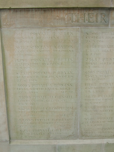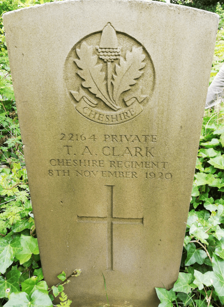 8/11/1920 Private Thomas (A) Clark 11th Bn. Much Woolton (St. Peter) Churchyard, Lancashire United Kingdom. ‘22164’ (pic from findagrave.com – with thanks)