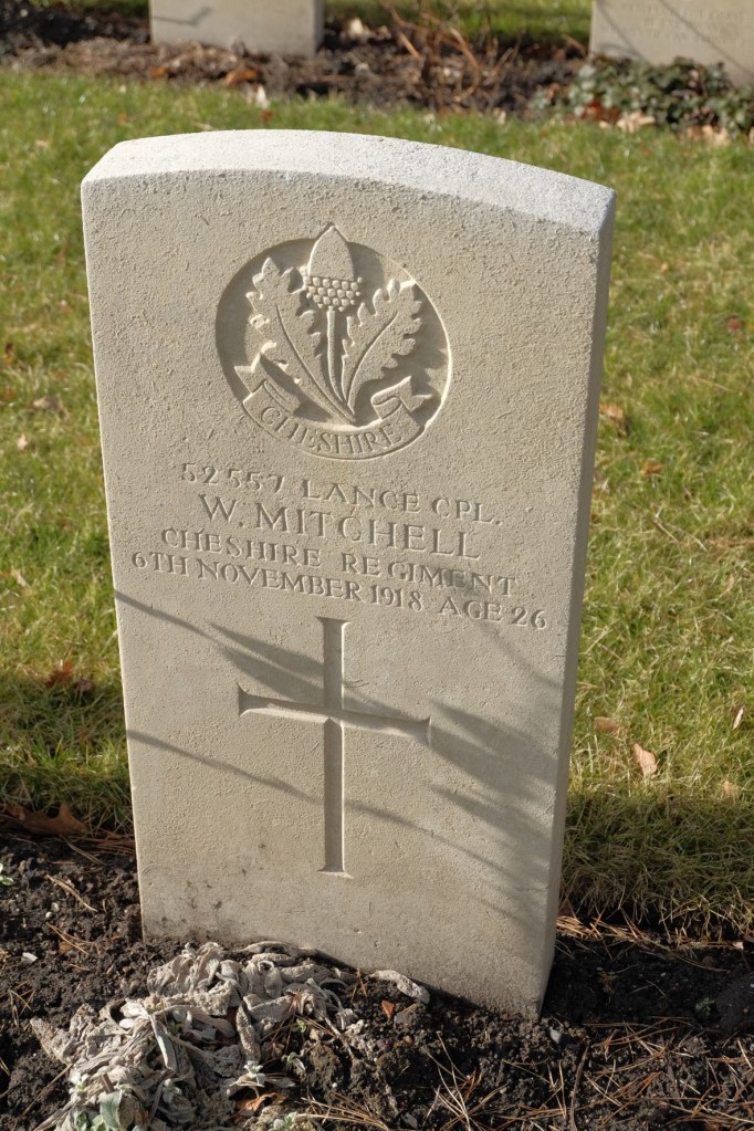 6/11/1918 Lance Corporal William Mitchell (Age 26) 11th Bn. Berlin South-Western Cemetery, Brandenburg Germany. ‘52557’ Son of Ellen Mitchell, of 34, Stanhope St., Reddish, Stockport. (pic from findagrave.com – with thanks)