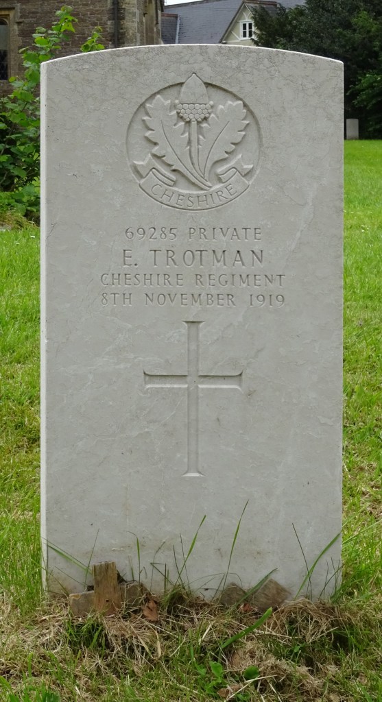 8/11/1919 Private Edwin (Andrew) Trotman Depot Stone (All Saints) Churchyard, Gloucestershire United Kingdom. ‘69285’ (pic from findagrave.com – with thanks)