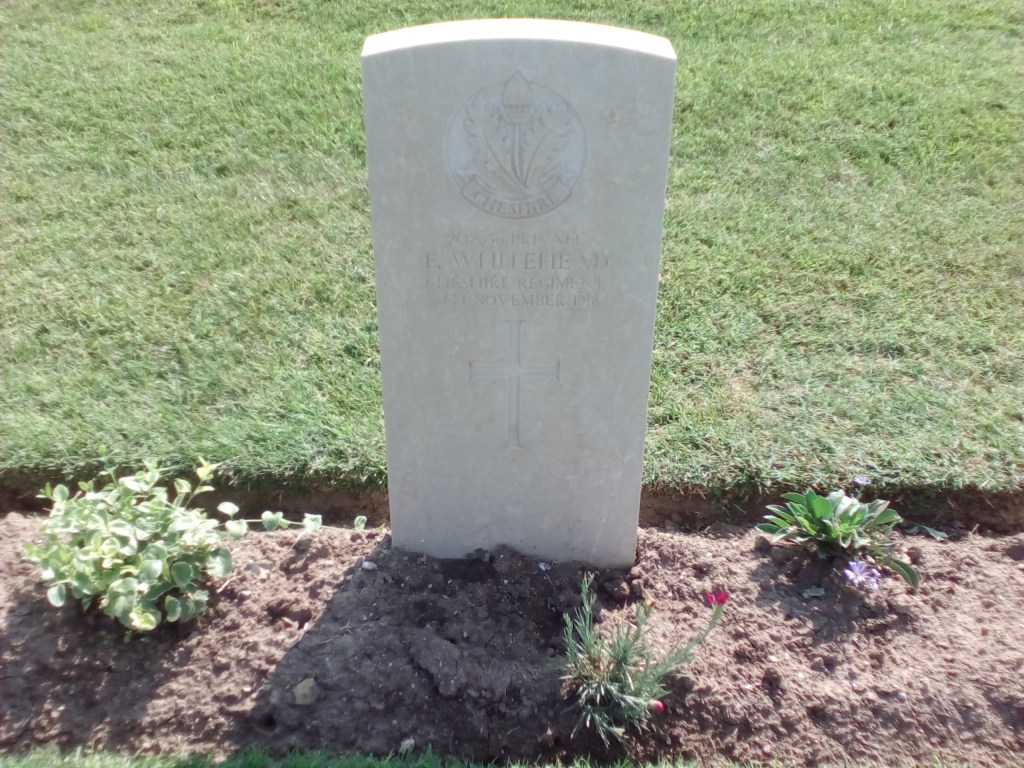 8/11/1918 Private Frank Whitehead 2nd Bn. Mikra British Cemetery, Kalamaria, Greece. ‘202636’ (pic from findagrave.com – with thanks)