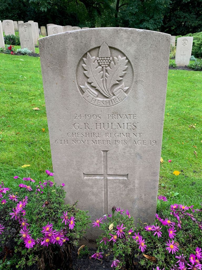 6/11/1918 Private George Robert Hulmes (Age 19) 11th Bn. Poznan Old Garrison Cemetery, Poland. ‘244905’ Son of Eveline Downing (formerly Hulmes), of 7, Commercial St., Werneth, Oldham, and the late George Frederick Hulmes. Born at Gorton, Manchester. (pic from findagrave.com – with thanks)