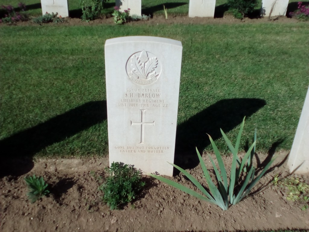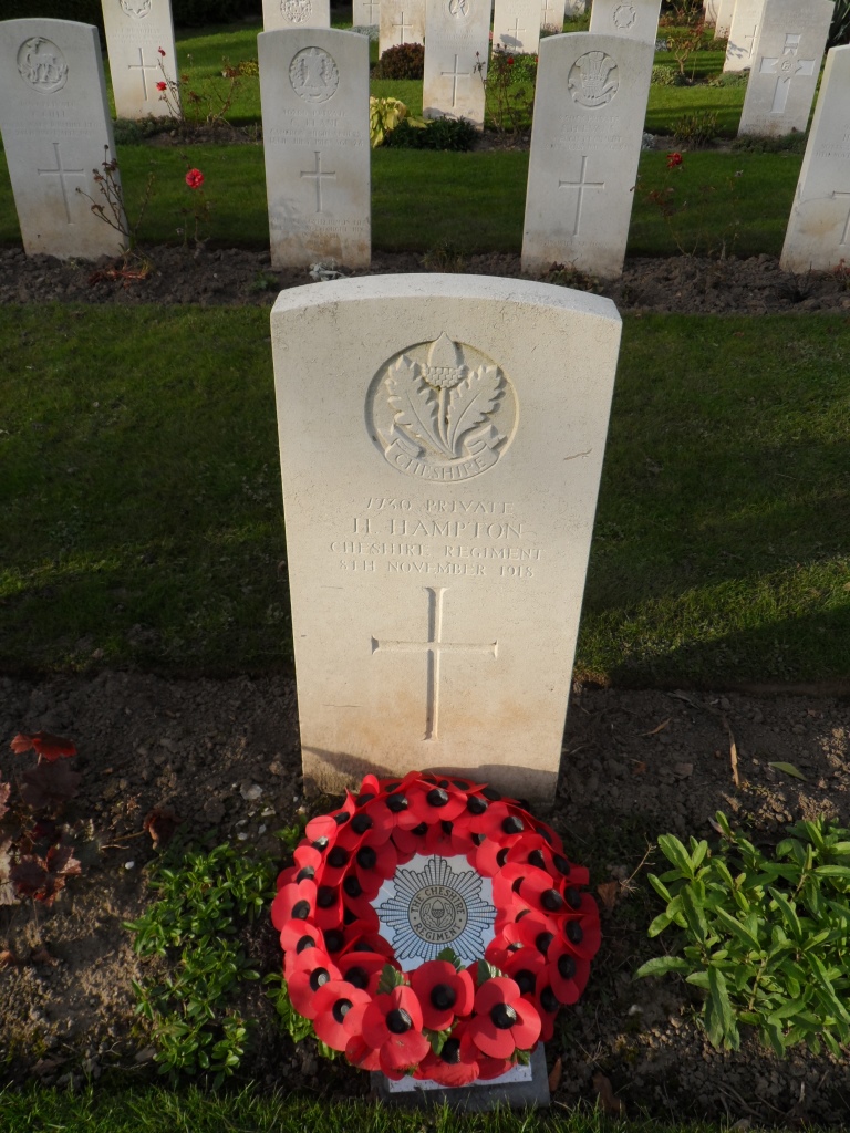 3/11/1918 Private Peter Horton (Age 29) 1st/7th Bn. Terlincthun British Cemetery, Wimille, Pas de Calais France. ‘291893’ Son of Sam and Annie Horton, of Congleton, Cheshire.