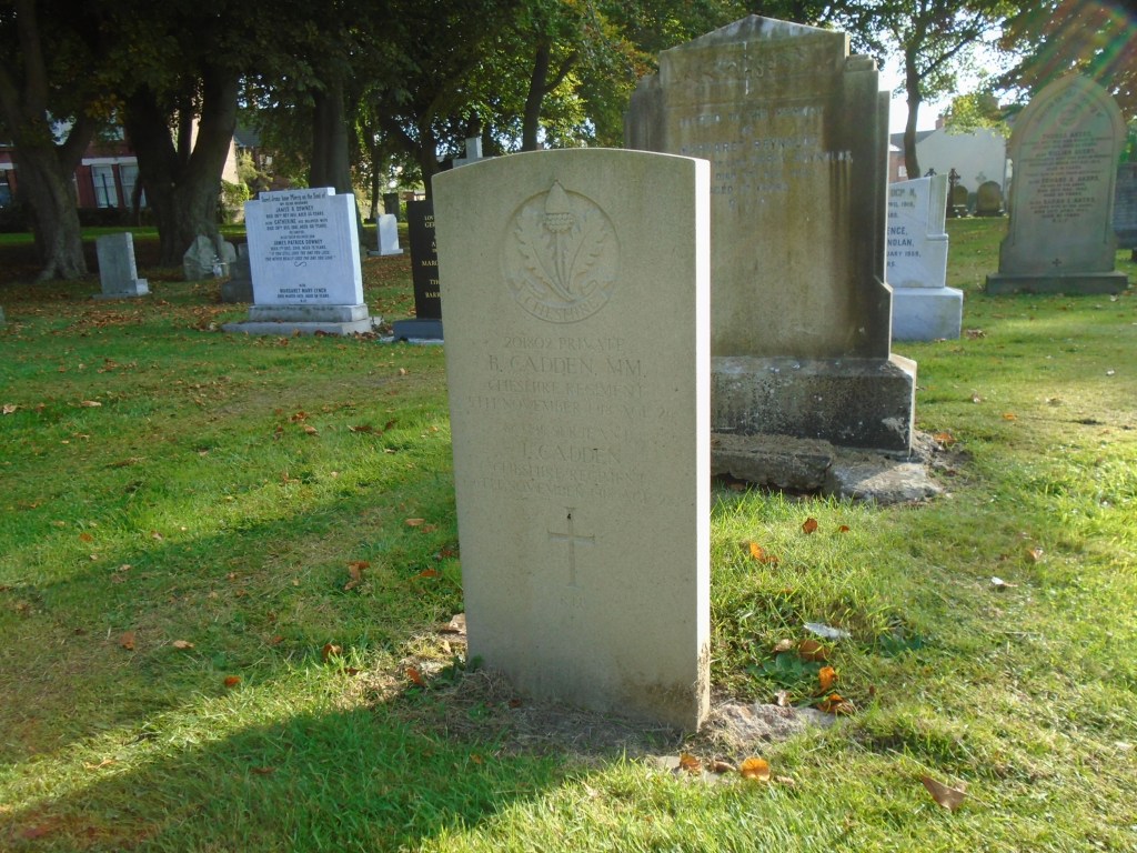 5/11/1918 Private Bernard Cadden (Age 26) MM 2nd/4th Bn. Wallasey (Rake Lane) Cemetery, Cheshire United Kingdom. ‘201802’ Son of Bernard and Margaret Cadden, of 30, Poulton Rd., Wallasey. His brother J Cadden also fell. (pic from findagrave.com – with thanks)