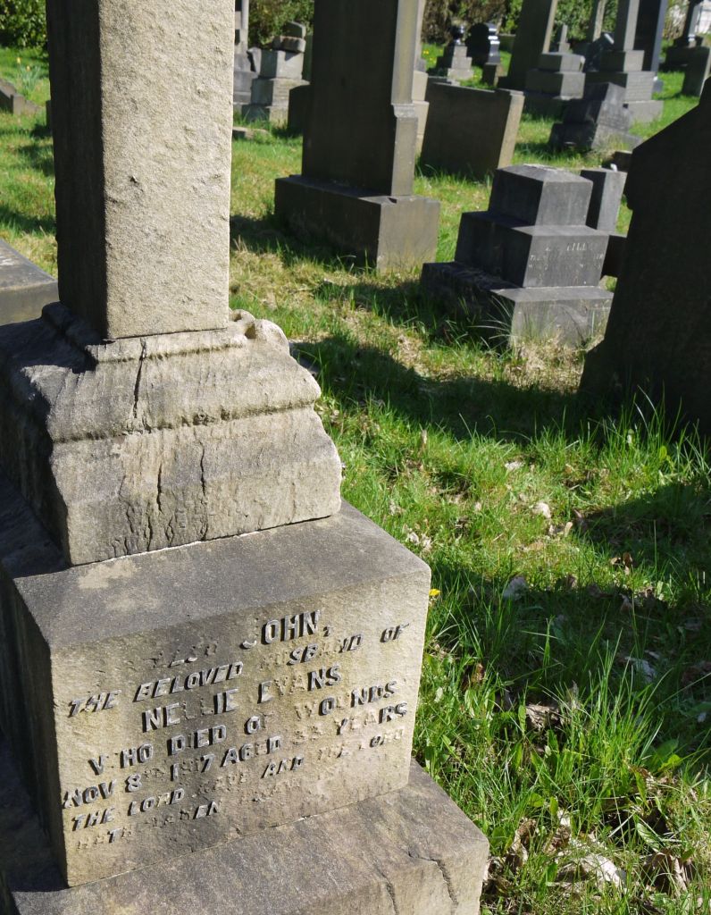 8/11/1917 Private John Evans (Age 34) 15th Bn. Pendlebury (St. John) Churchyard, Lancashire United Kingdom. ‘292380’ Son of Richard and Alice Evans; husband of Ellen Beatrice Evans, of 324, Liverpool St., Salford, Manchester. (pic from findagrave.com – with thanks)