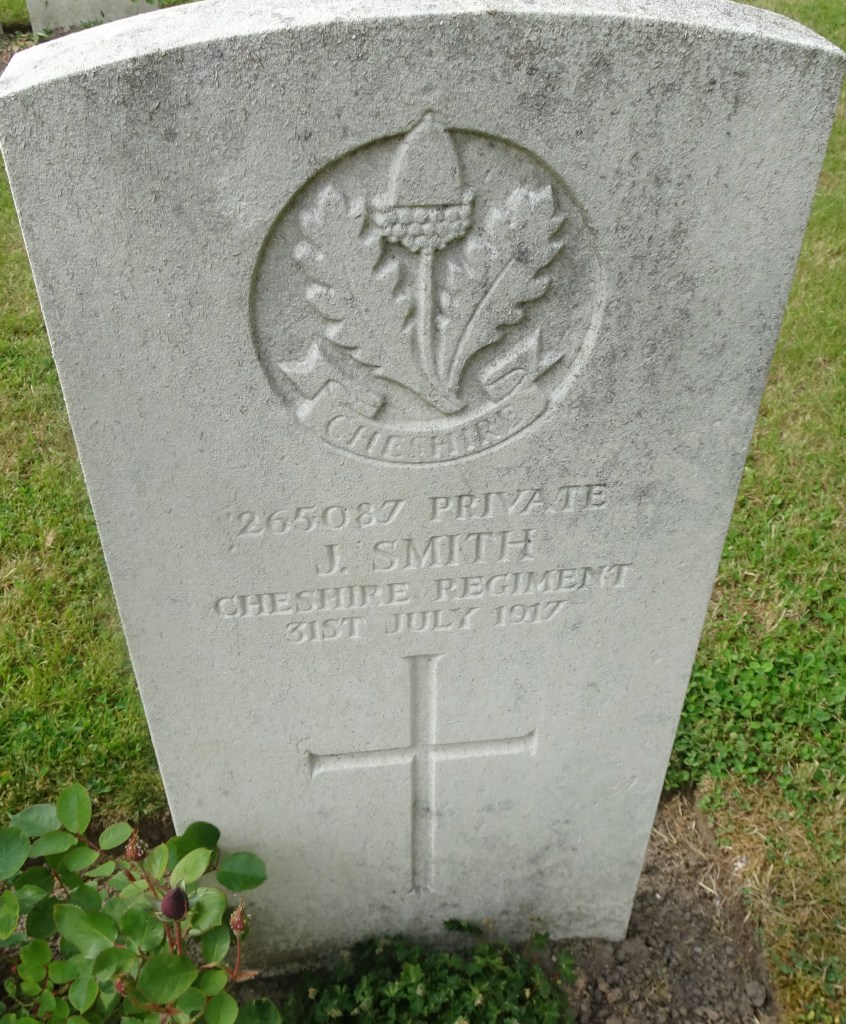 3/11/1917 Private George William Smith (Age 25) 6th Bn. Lijssenthoek Military Cemetery, West-Vlaanderen Belgium. ‘18409’ Son of Samuel and Alice Smith, of 4, James Terrace, Whitby, Cheshire.