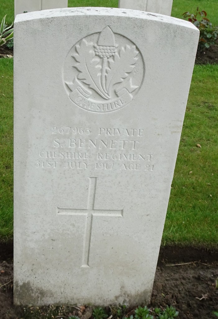 5/11/1917 Lance Corporal Frank Siddorn (Age 23) 1st Bn. Menin Road South Military Cemetery, West-Vlaanderen Belgium. ‘34810’ Son of Levi and Mary Siddorn, of 62, Catherine St., Crewe.