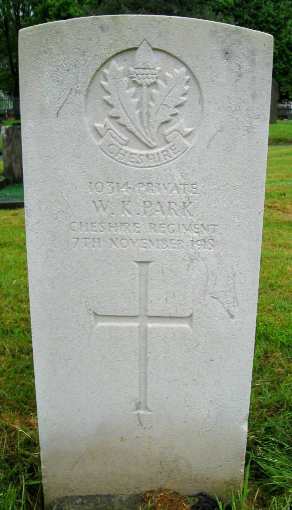 7/11/1918 Private William (K) Park 1st Bn. Northwich Cemetery, Cheshire United Kingdom. ‘10314’ (pic from findagrave.com – with thanks)