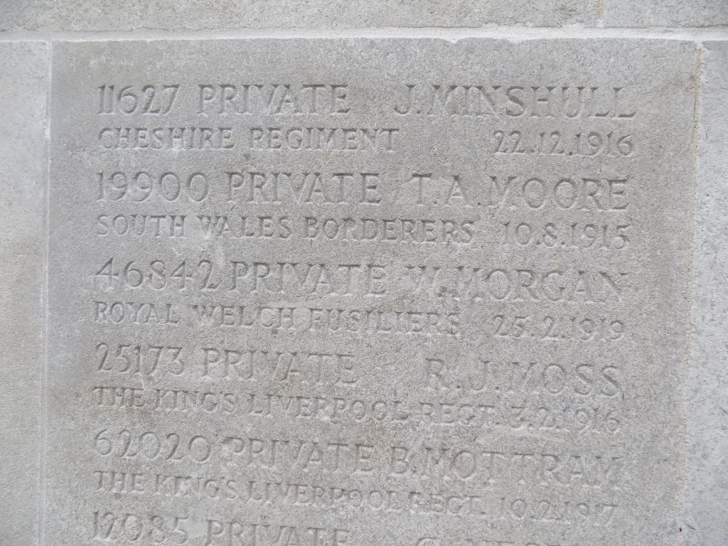 22/12/1916 Private John Minshull 12th Bn. Liverpool (Kirkdale) Cemetery, Lancashire United Kingdom. ‘11627’ (pic from findagrave.com – with thanks)