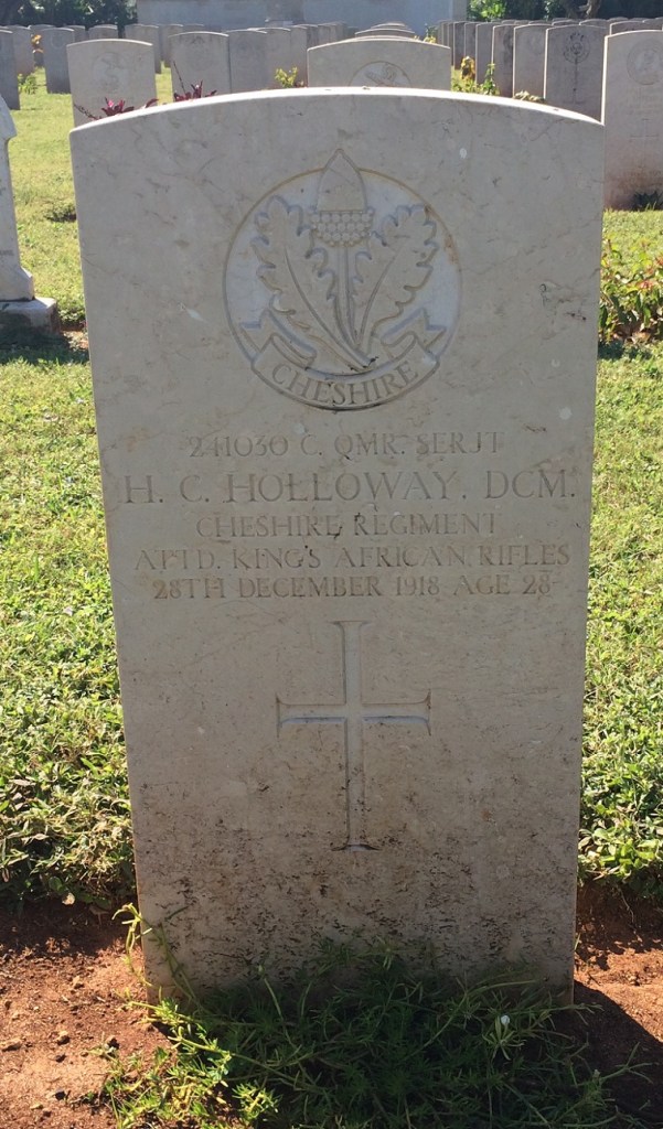 28/12/1918 Company Quartermaster Serjeant Henry Charles Holloway (Age 28) DCM Dar Es Salaam (Upanga Road) Cemetery, Tanzania. ‘241030’ Son of Charles and Clara Holloway, of 6, Hoole Park, Chester. (pic from findagrave.com – with thanks)