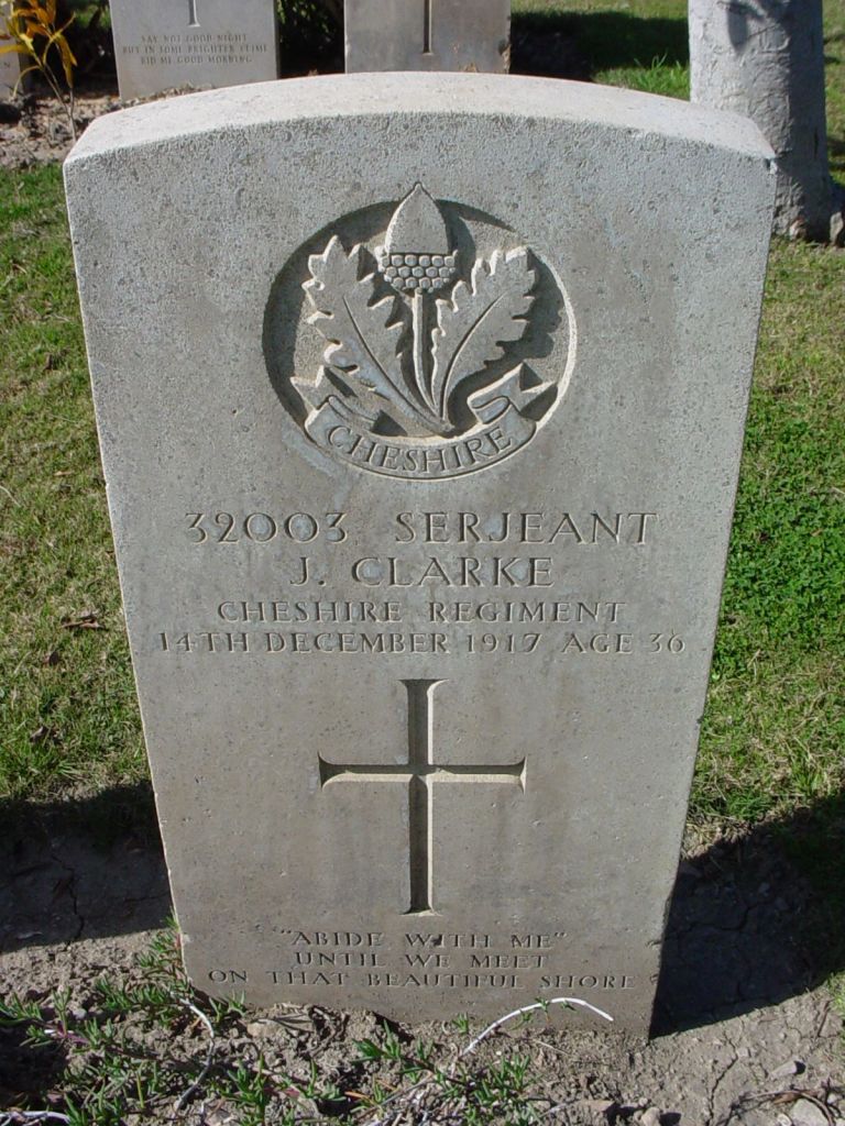 14/12/1917 Serjeant Joseph Clarke (Age 36) 2nd Garrison Bn. Alexandria (Hadra) War Memorial Cemetery, Egypt. ‘32003’ Husband of Jessie M. Clarke, of 13, Barter St., Dingle, Liverpool. (pic from findagrave.com – with thanks)