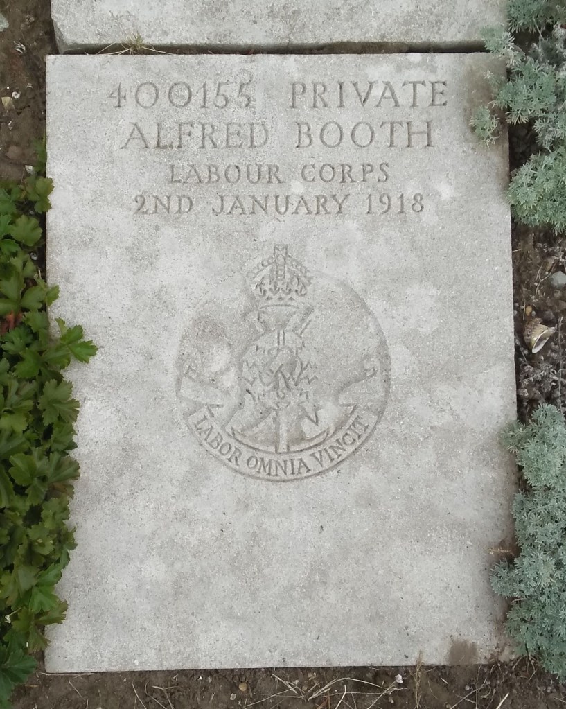2/01/1918 Private Alfred Booth (Age 30) Boulogne Eastern Cemetery, France. Son of Alfred and Fanny Booth, of Macclesfield, Cheshire.