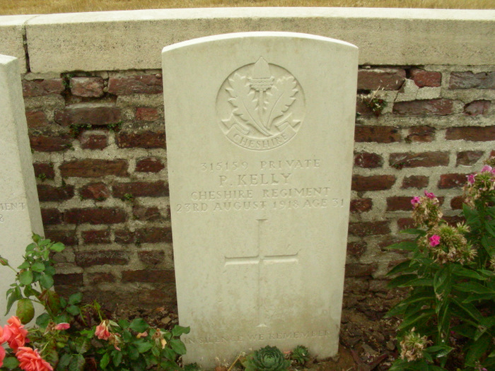 21/08/1918 Private Patrick Kennealy (Age 26) 1st Bn. Stockport Borough Cemetery, Cheshire United Kingdom. ‘9745’ Son of Patrick and Mary Ann Kennealy. Born at Stockport. (pic from findagrave.com. – with thanks)