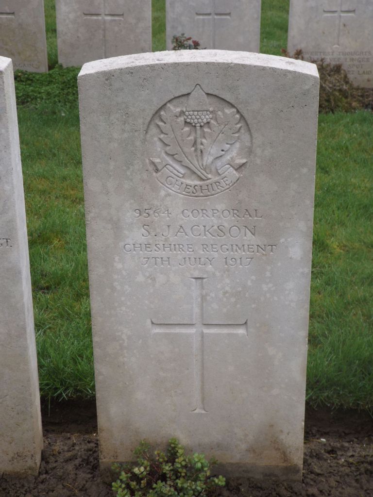 2/07/1917 Private Thomas William Stanton (Age 33) 3rd Bn. Nantwich (All Saints) Church Cemetery, Cheshire United Kingdom. ‘62423’ Son of William and Martha Stanton, of Nantwich; husband of Elizabeth Ann Stanton, of 7, Millstone Lane, Nantwich. (pic from findagrave.com – with thanks)