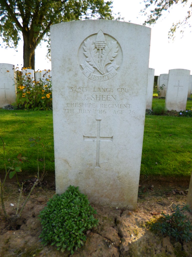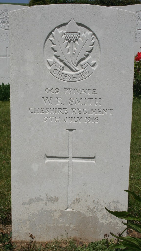 1/07/1916 Private John William Boardman (Age 22) 1st/5th Bn. Bienvillers Military Cemetery, Pas de Calais France. ‘240329’ Son of Edward and Edith Boardman, of 7, Broom Rd., Hale, Cheshire.