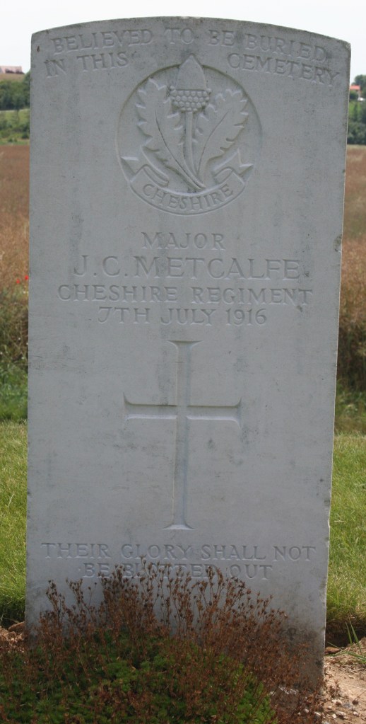 7/07/1916 Major John Chaytor Metcalfe 13th Bn. Ovillers Military Cemetery, Somme France. (pic from findagrave.com – with thanks)
