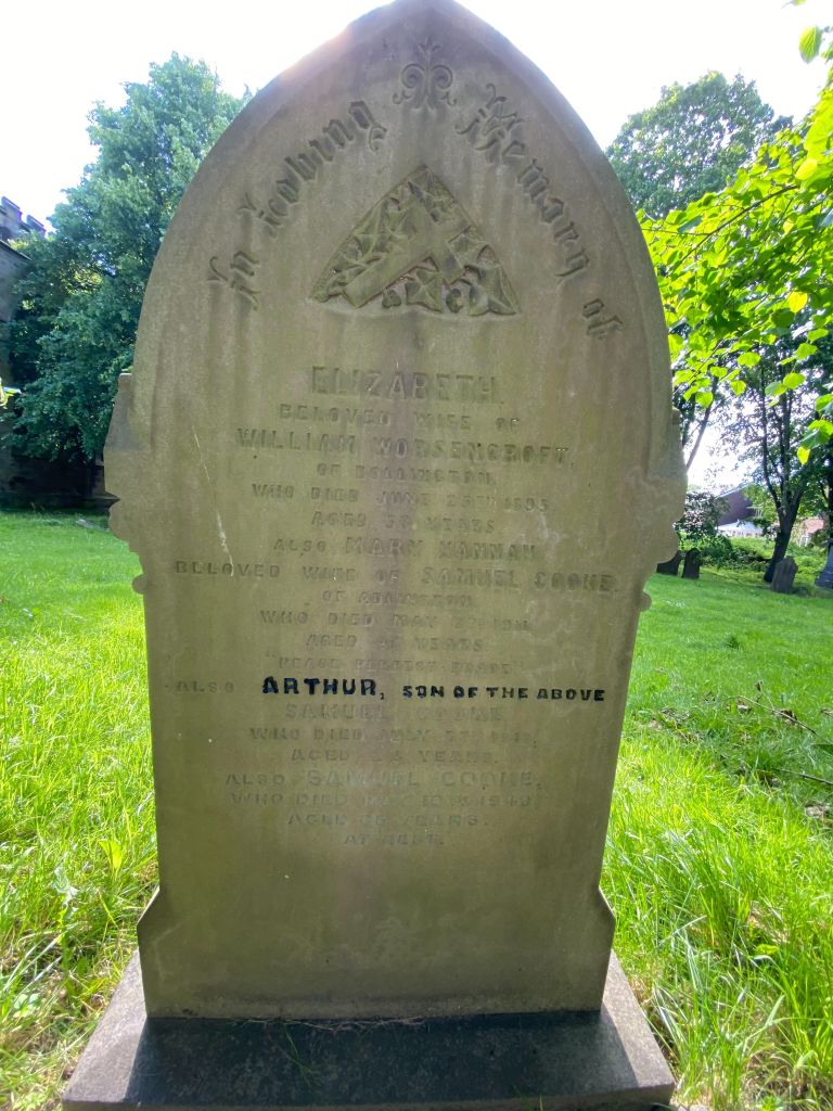 1/07/1916 Private William Hinchliffe (Age 25) 5th Bn. Gommecourt British Cemetery No.2, Hebuterne, Pas de Calais France. ‘1462’ Husband of the late Clara Hinchliffe, of 4, Bank St., Heaton Lane, Stockport.