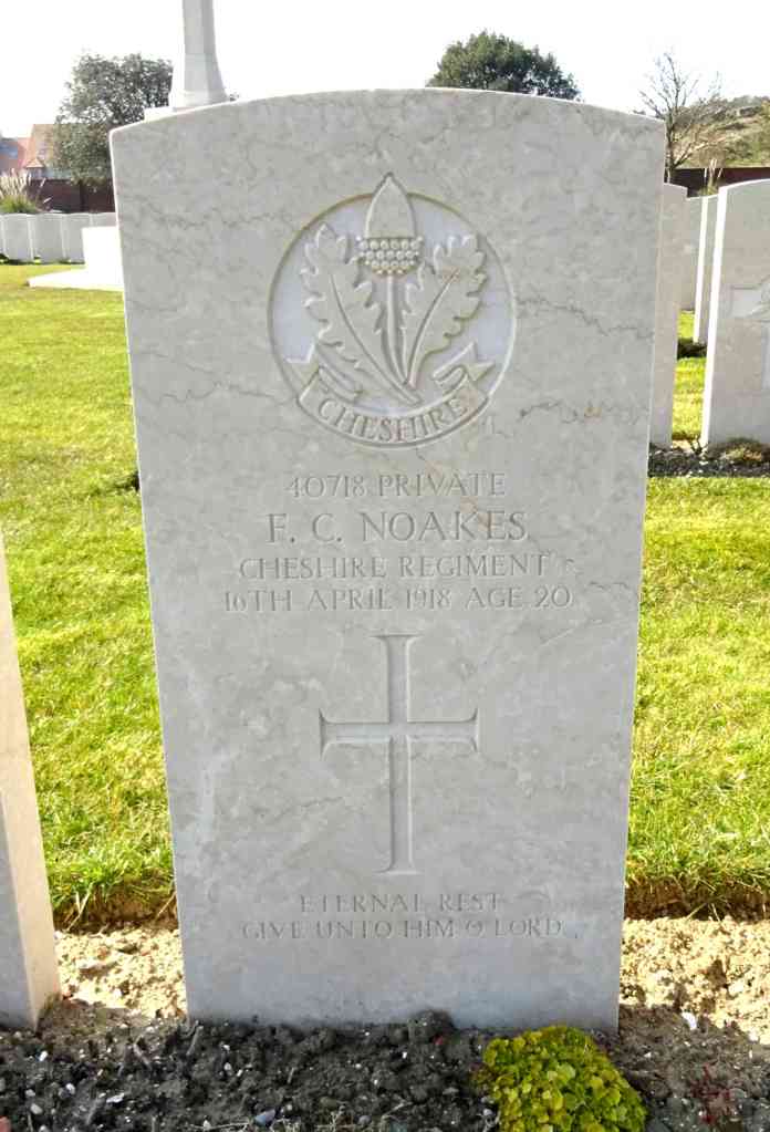 14/04/1918 Private Edward William Noblett (Age 27) 1st Bn. Longuenesse (St. Omer) Souvenir Cemetery, Pas de Calais France. ‘51255’ V. A. 45. Son of Edward and Mary Noblett, of 147, The Mount, Belfast.