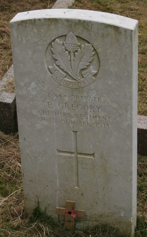 26/10/1918 Private Ernest Gregory Wrenbury (St. Margaret) Churchyard, Cheshire United Kingdom. ‘78844’ (pic from findagrave.com – with thanks)